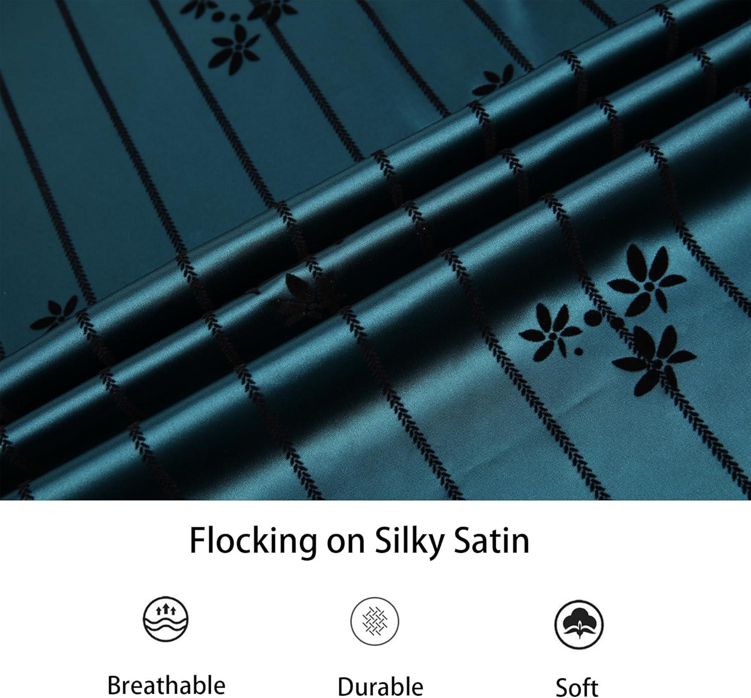 Alex Vando Men’s Luxury Flocked Satin Shirt Long Sleeve Stylish Button Down for Nightlife, Events, and Bold Fashion(Flower Navy)
