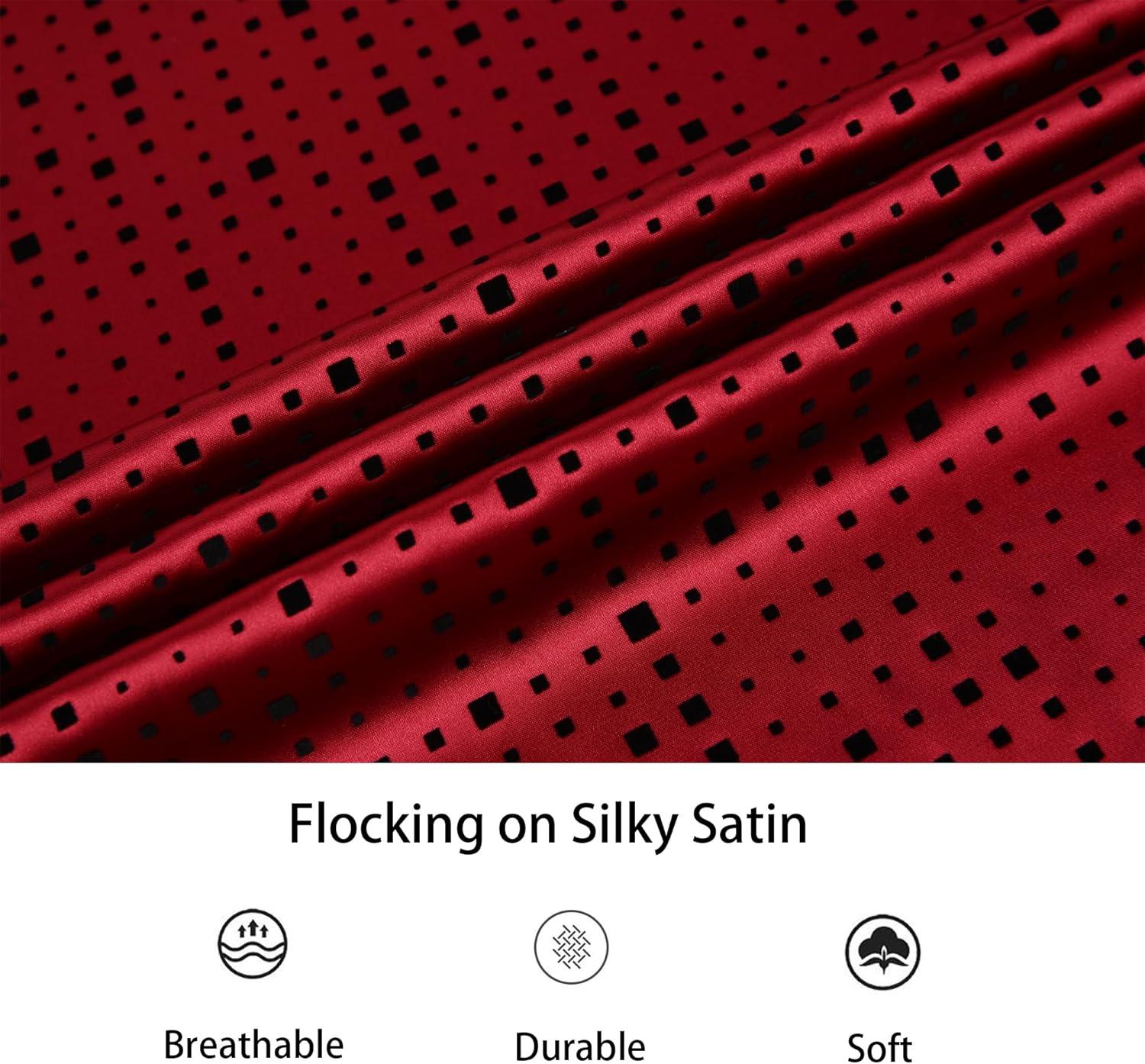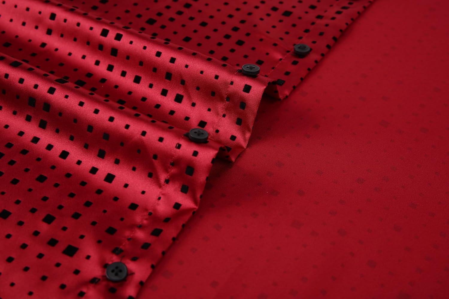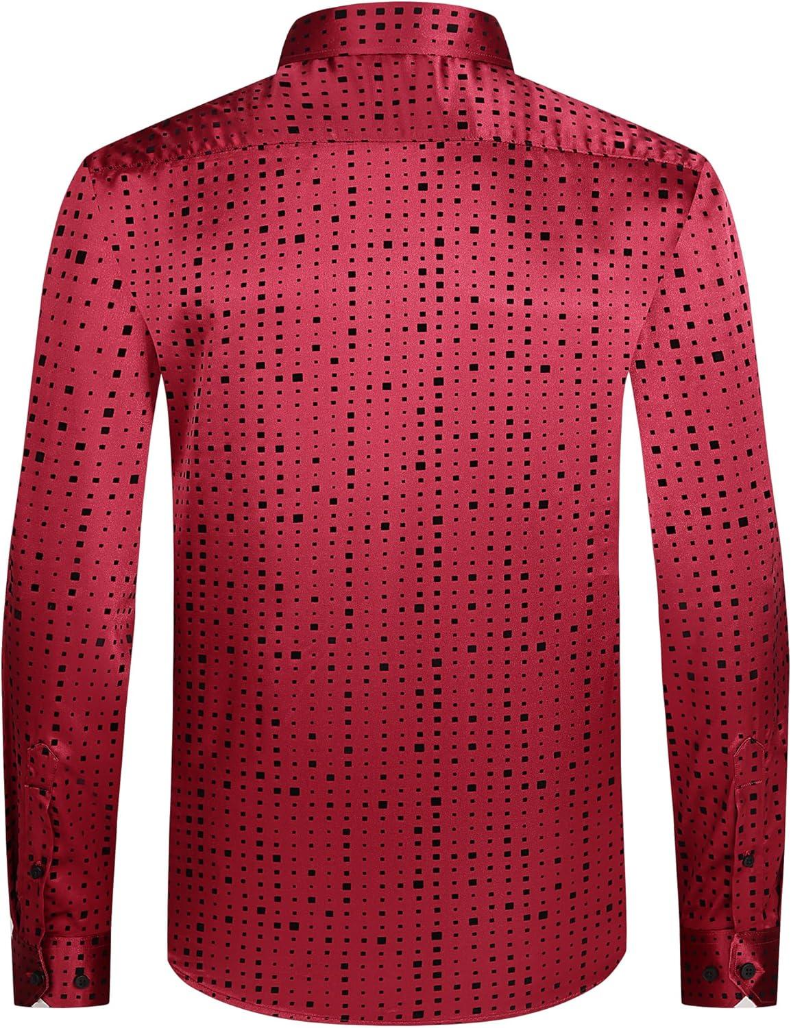 Alex Vando Men’s Luxury Flocked Satin Shirt Long Sleeve Stylish Button Down for Nightlife, Events, and Bold Fashion(Square Burgundy)