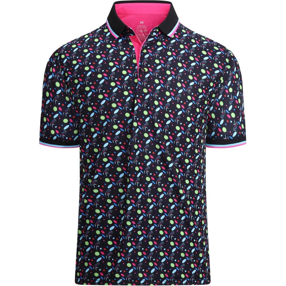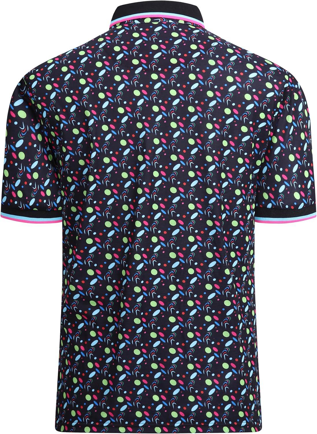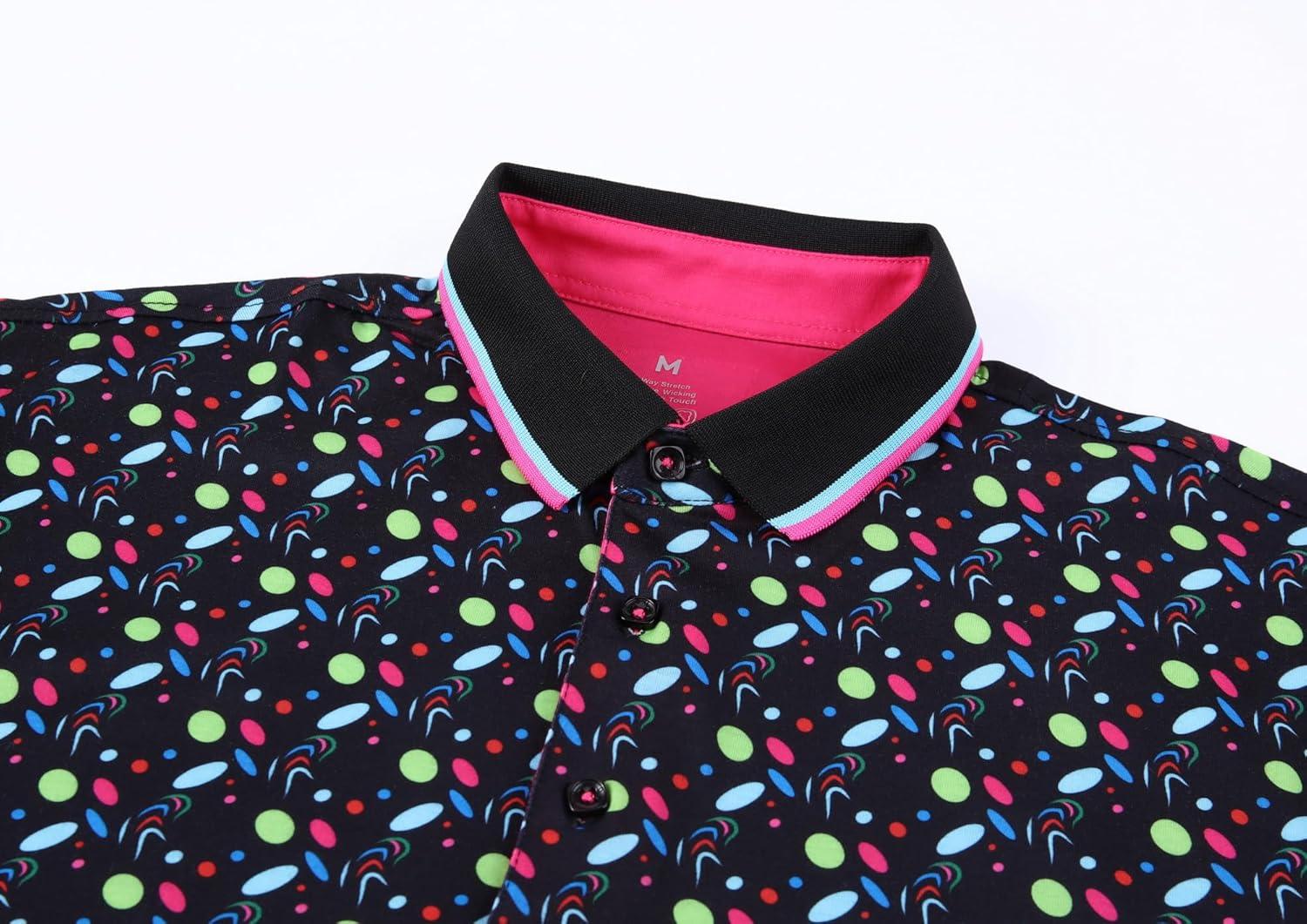 Alex Vando Mens Polo Shirts Short Sleeve Regular Fit Fashion Designed Shirt(Black Multi Circle)