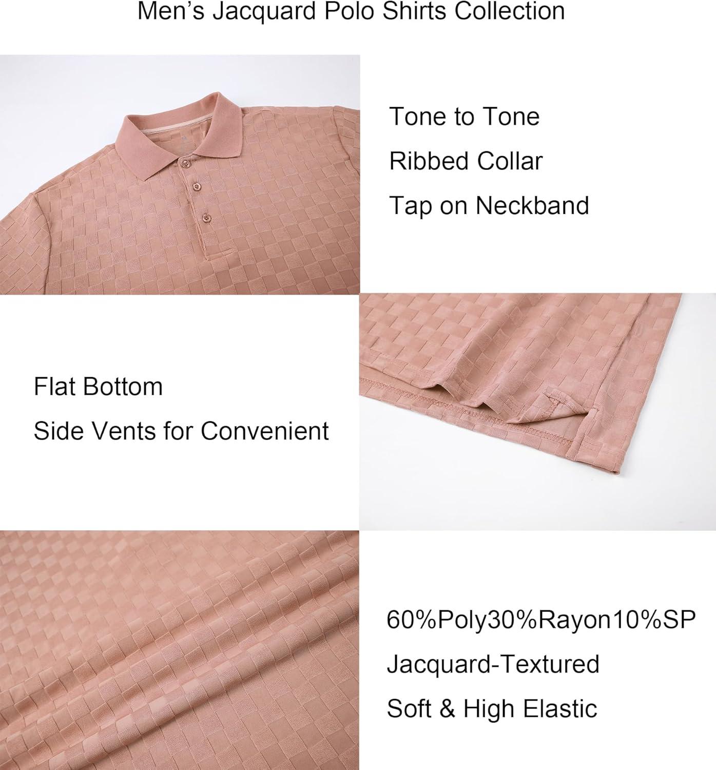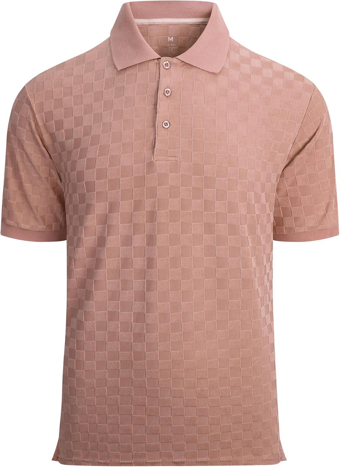 Alex Vando Mens Polo Shirts Short Sleeve Regular Fit Fashion Designed Shirt(Pink Jacquard)