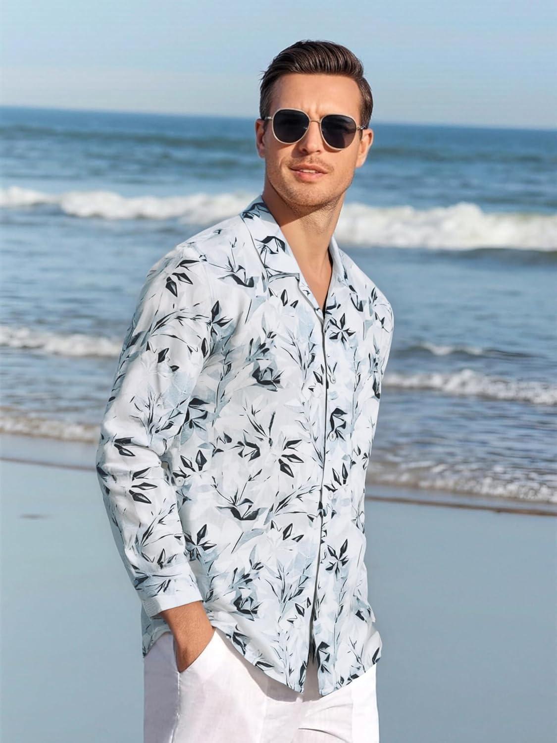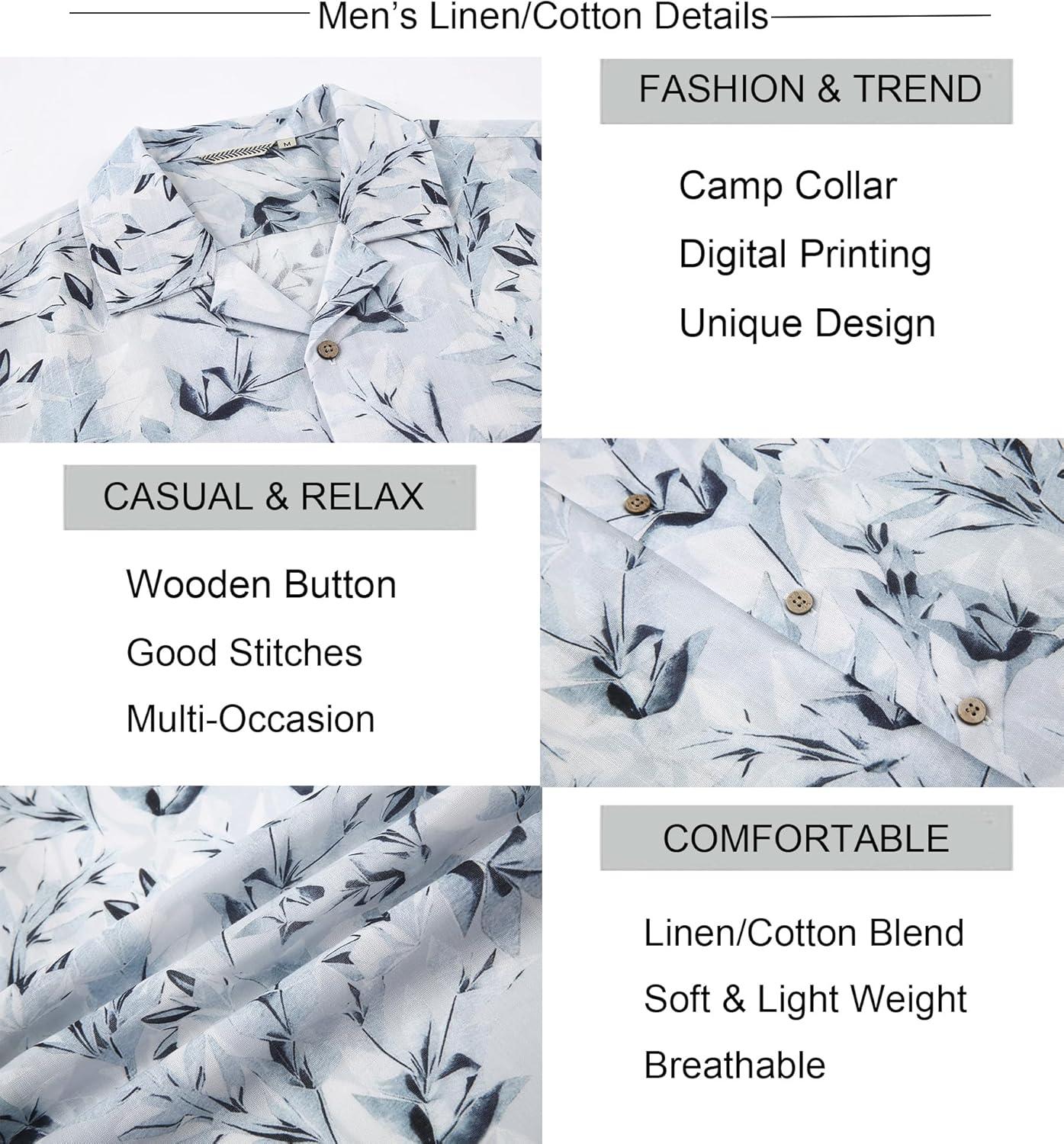 Be the first to review “Alex Vando Mens Print Button Down Shirts Linen Cotton Camp Collar Long Sleeve Casual Shirts(White Leaf)”