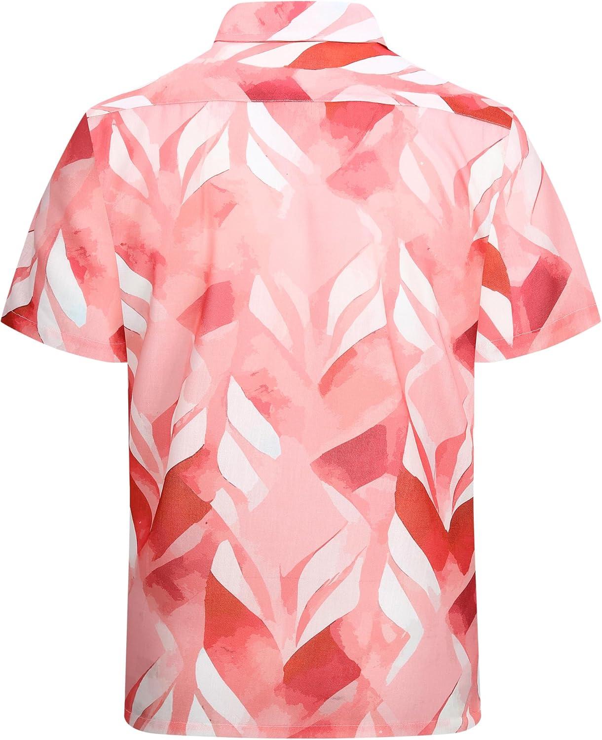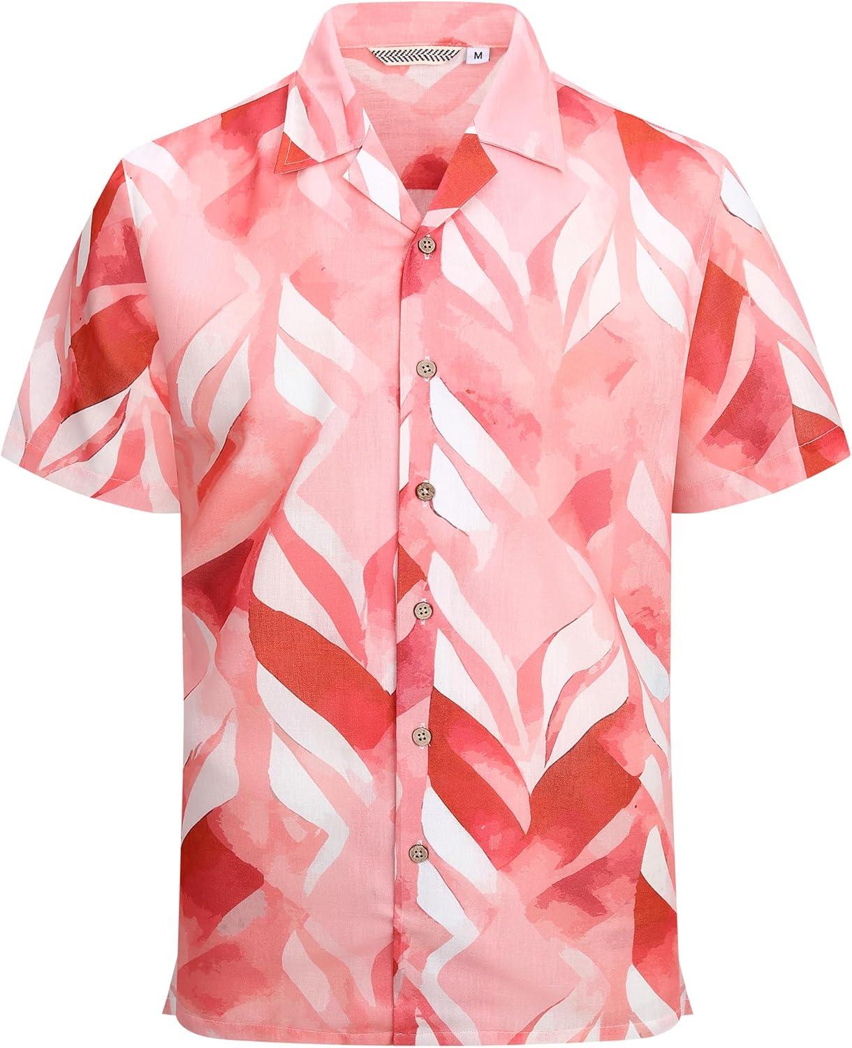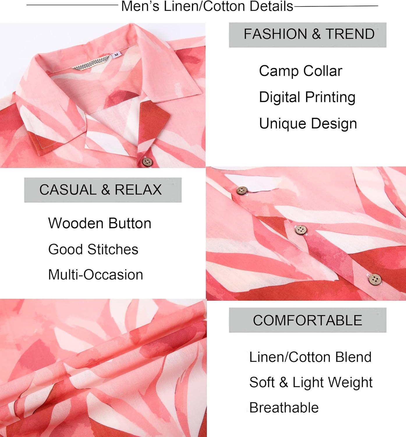 Alex Vando Mens Print Linen Cotton Shirts Short Sleeve Casual Summer Hawaiian Beach Shirt for Men(Red Leaf)