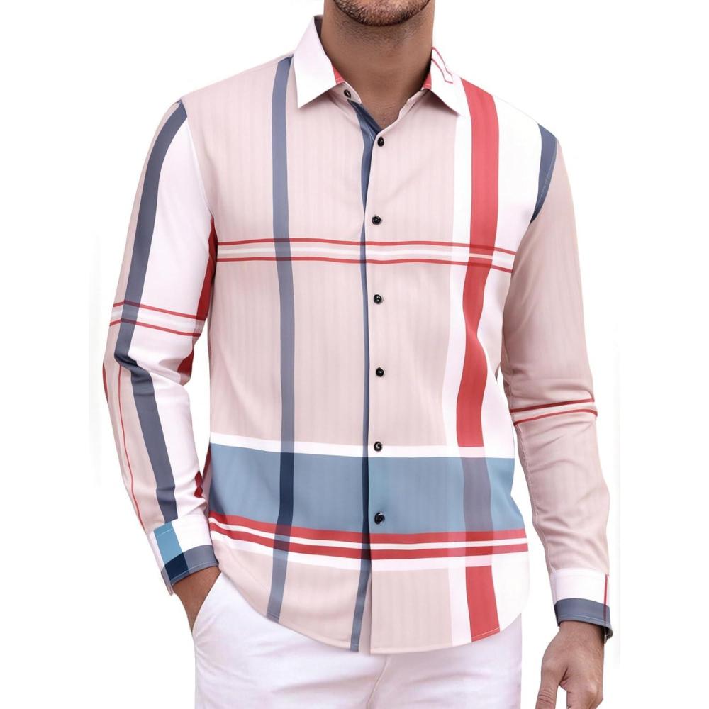 Alex Vando Mens Print Plaid Button Down Shirts Wrinkle Free 4-Way Stretch Casual Dress Shirt for Men(Red/Grey)