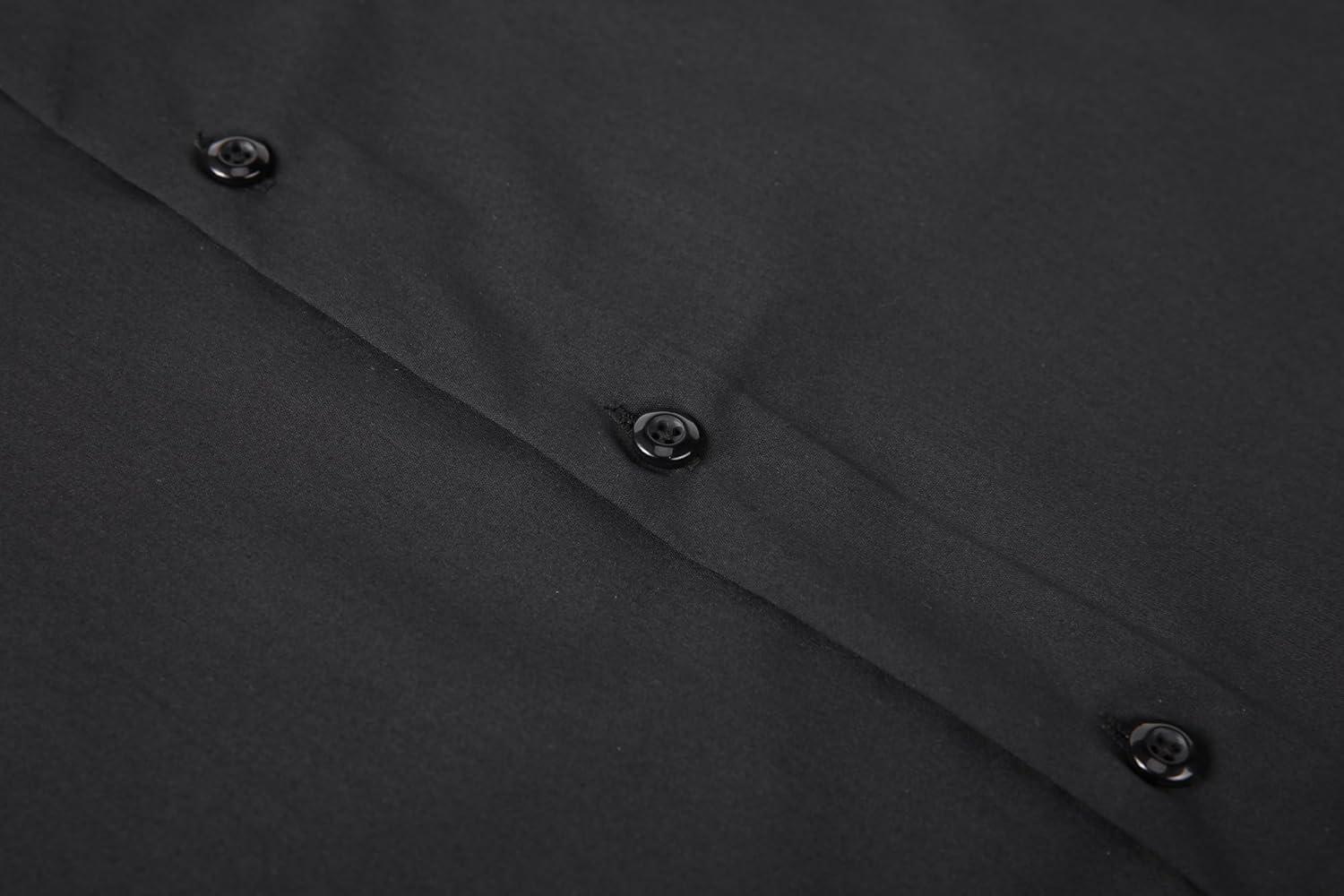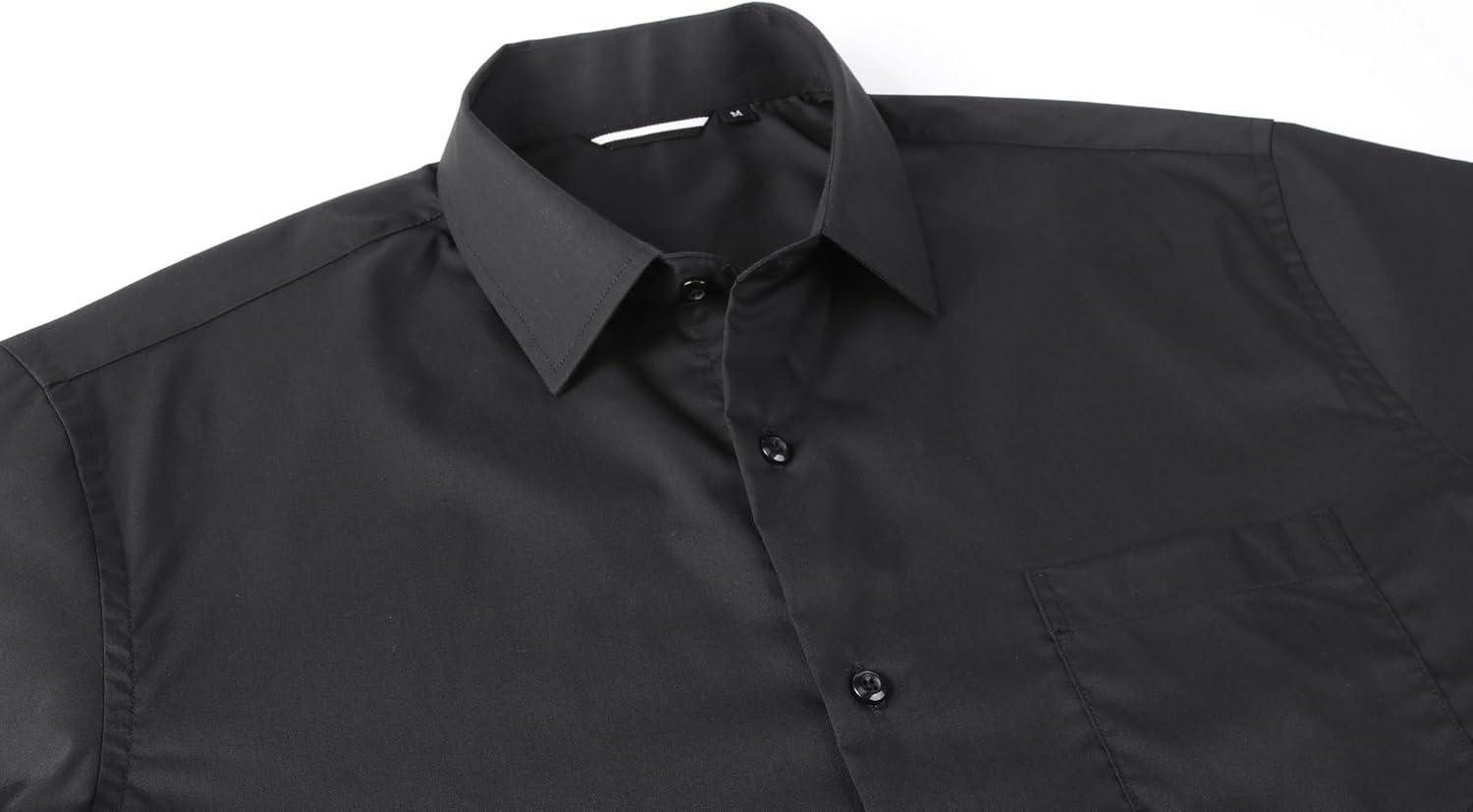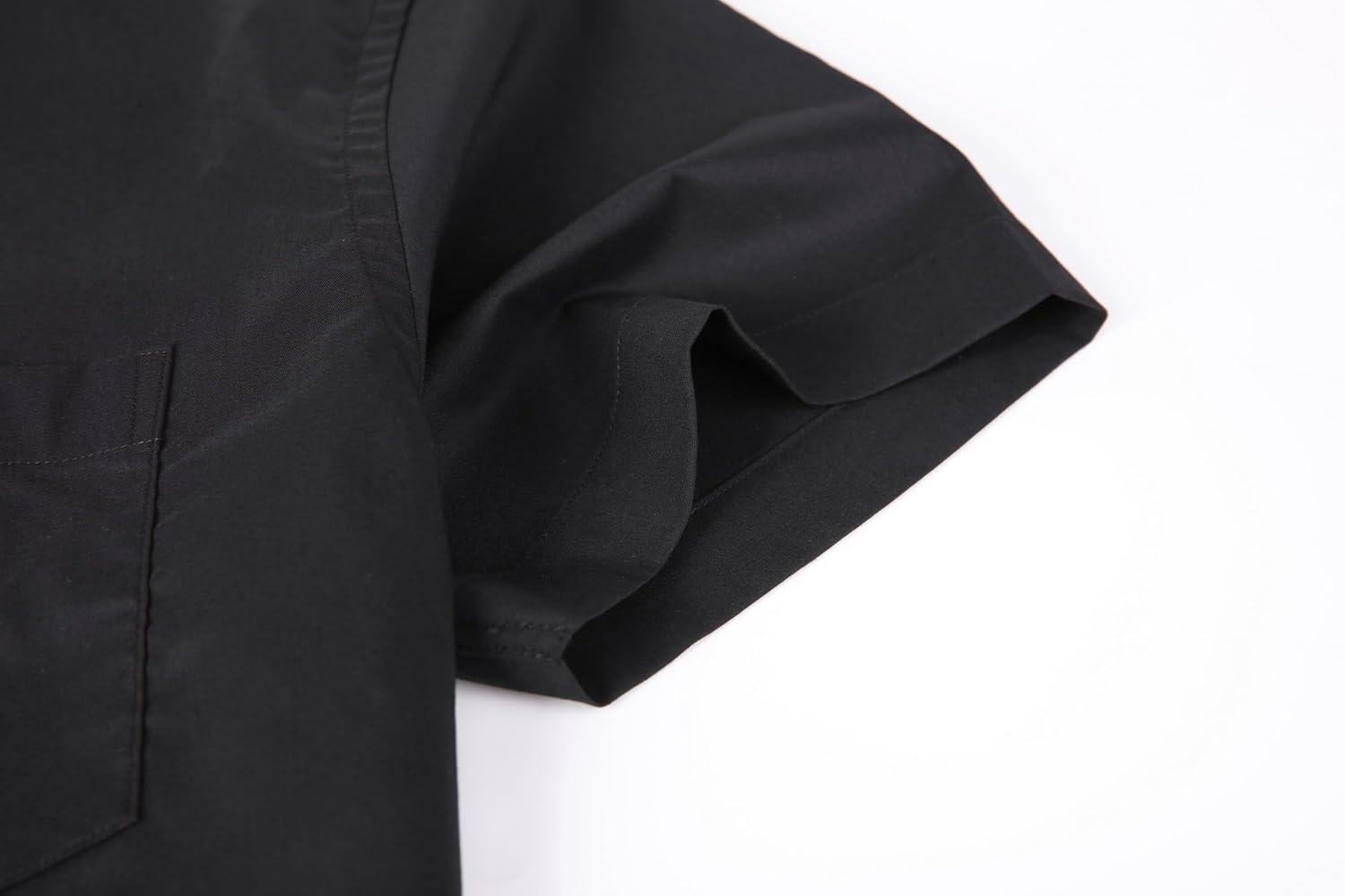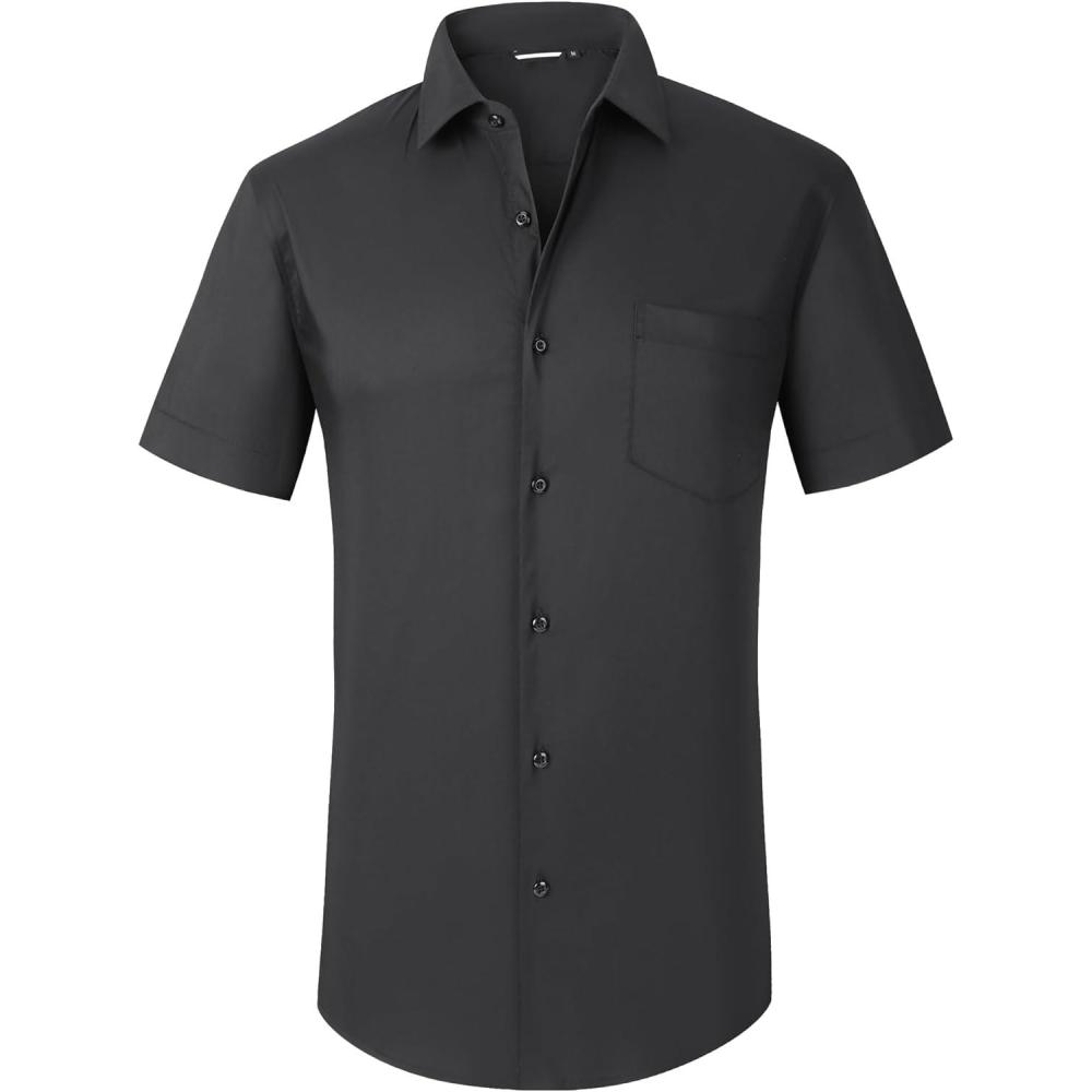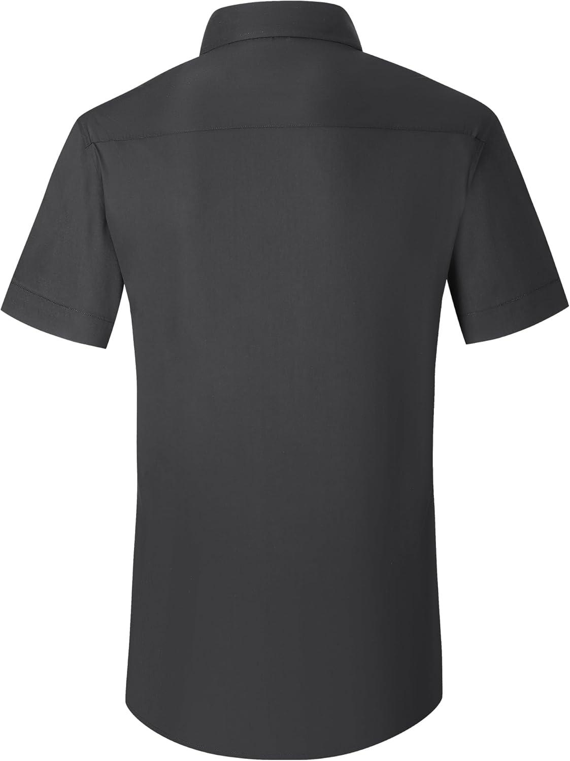 Alex Vando Mens Short Sleeve Dress Shirt Solid Cotton Stretch Button Down Shirt with Pocket(Black)