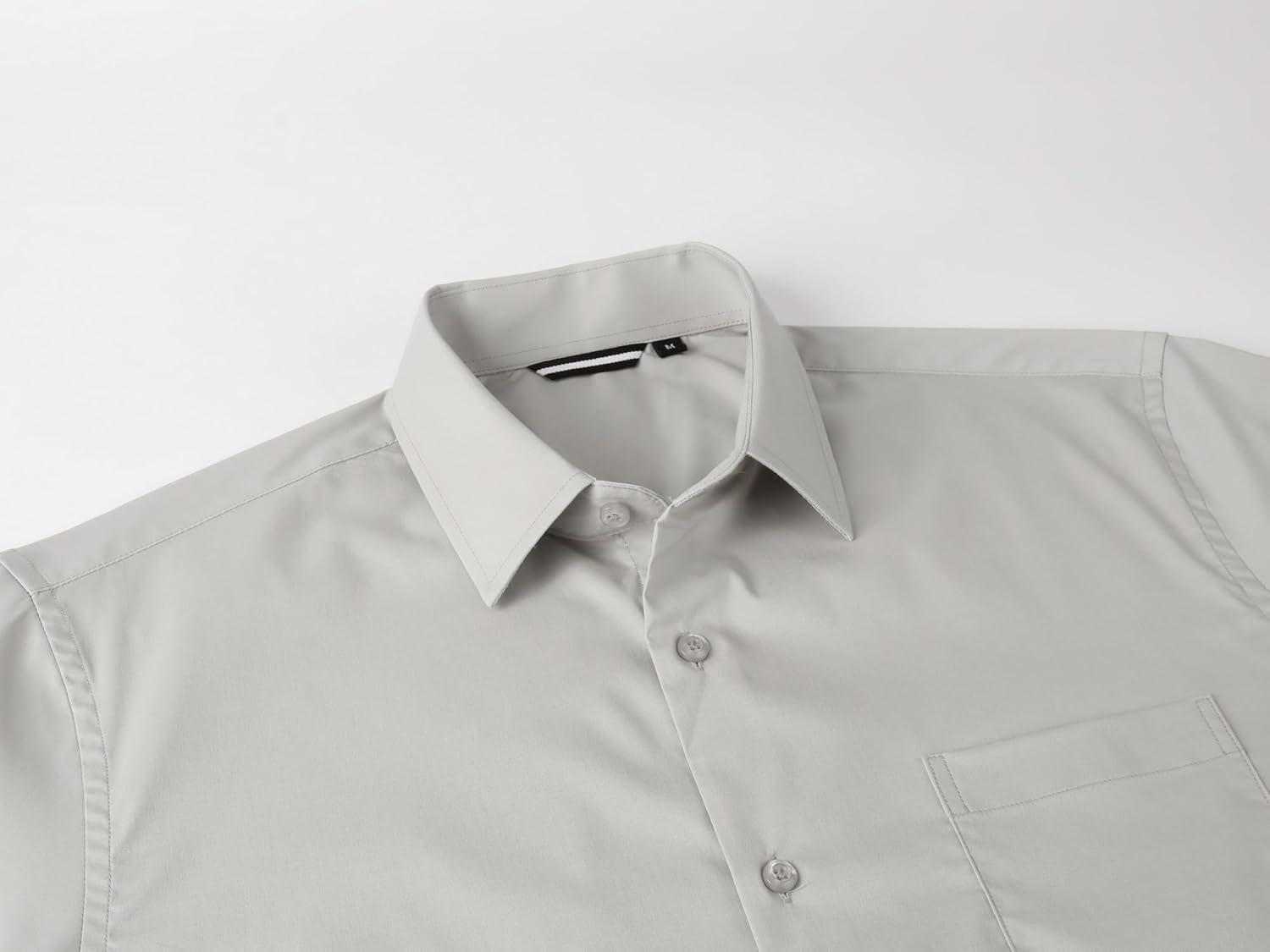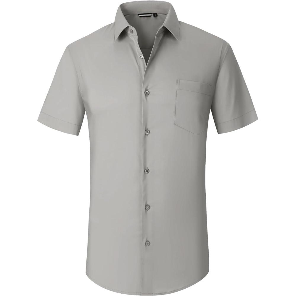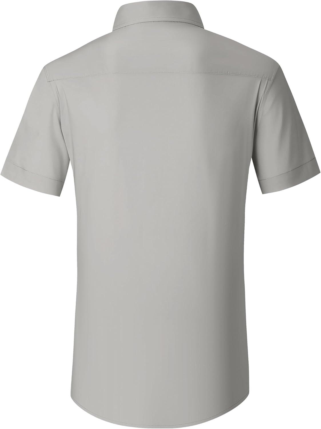 Alex Vando Mens Short Sleeve Dress Shirt Solid Cotton Stretch Button Down Shirt with Pocket(Grey)