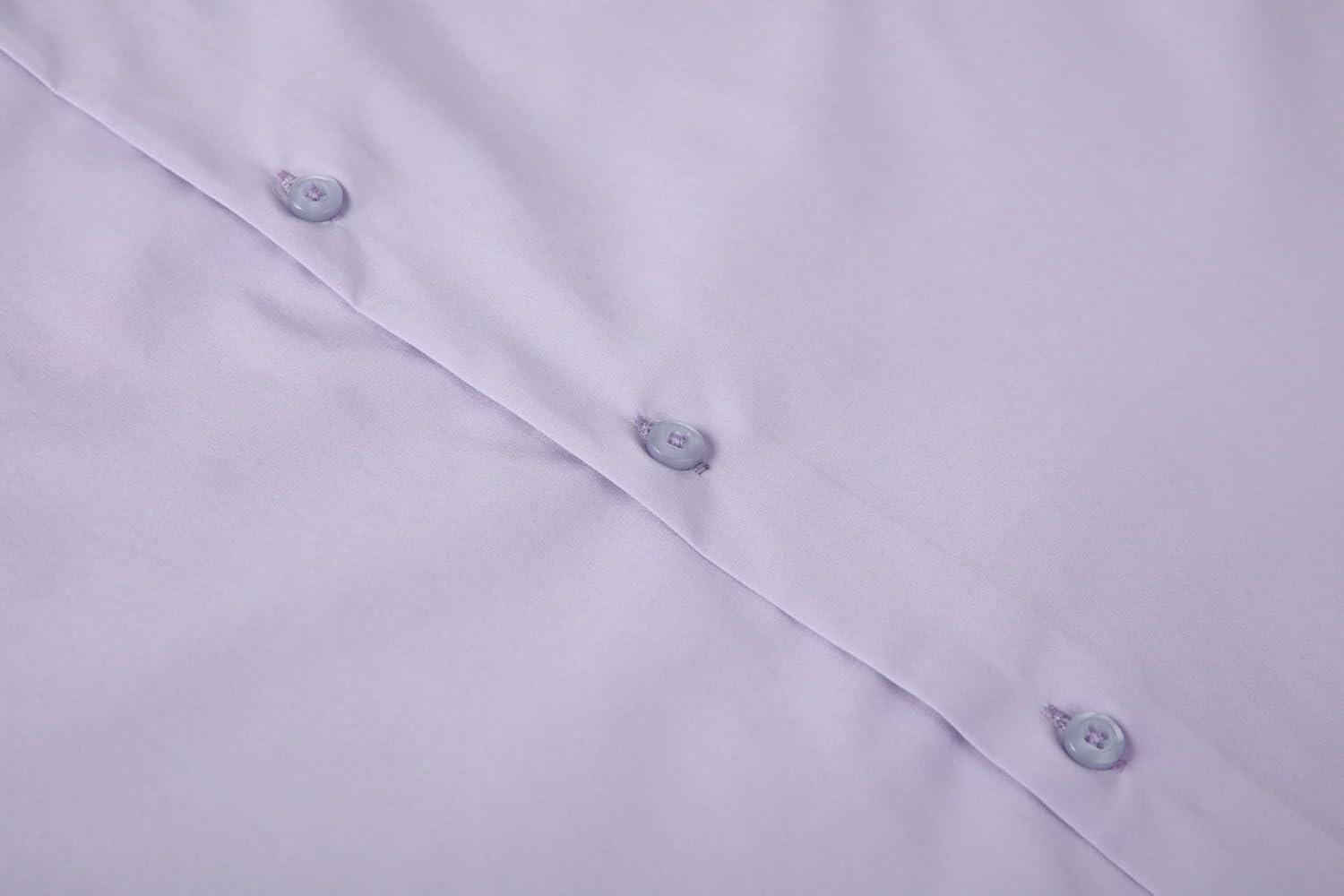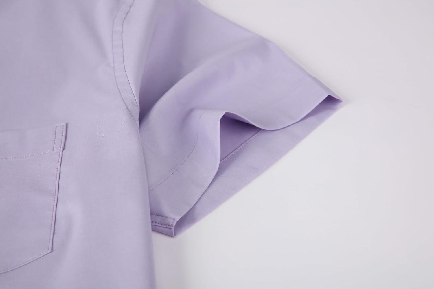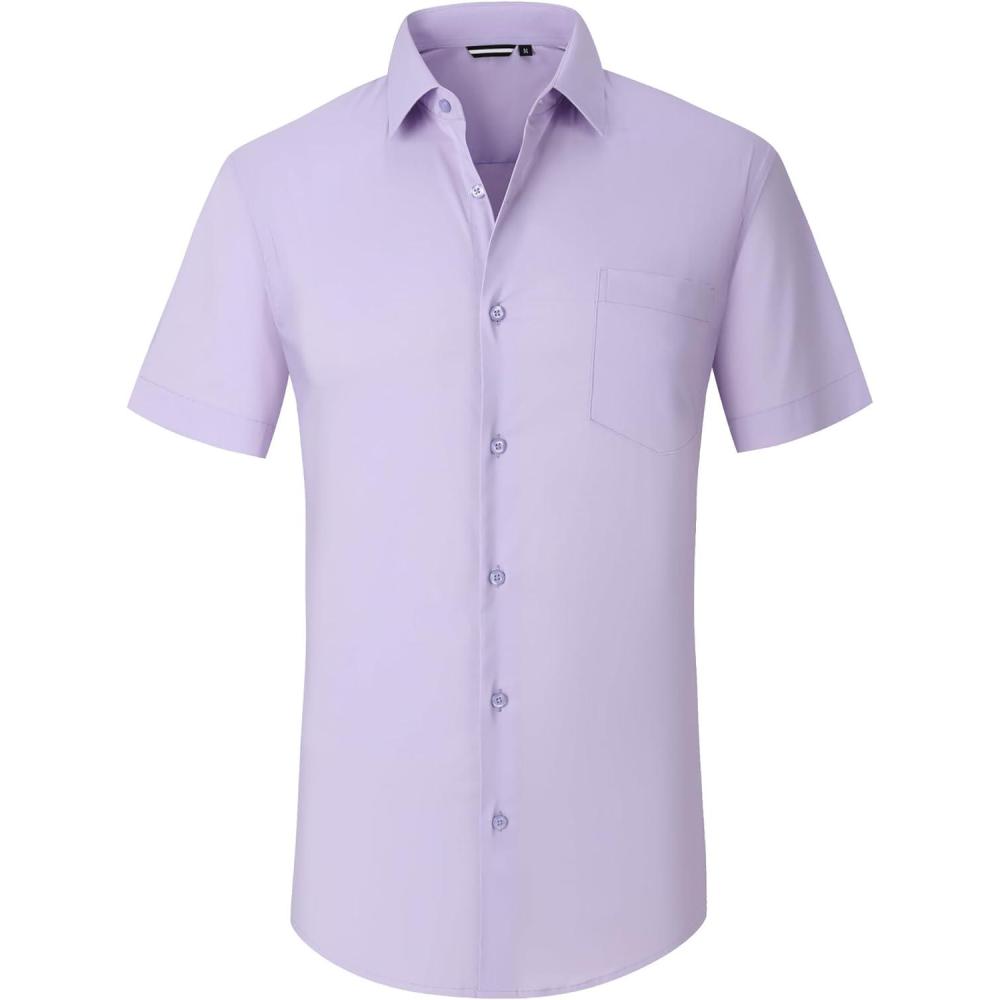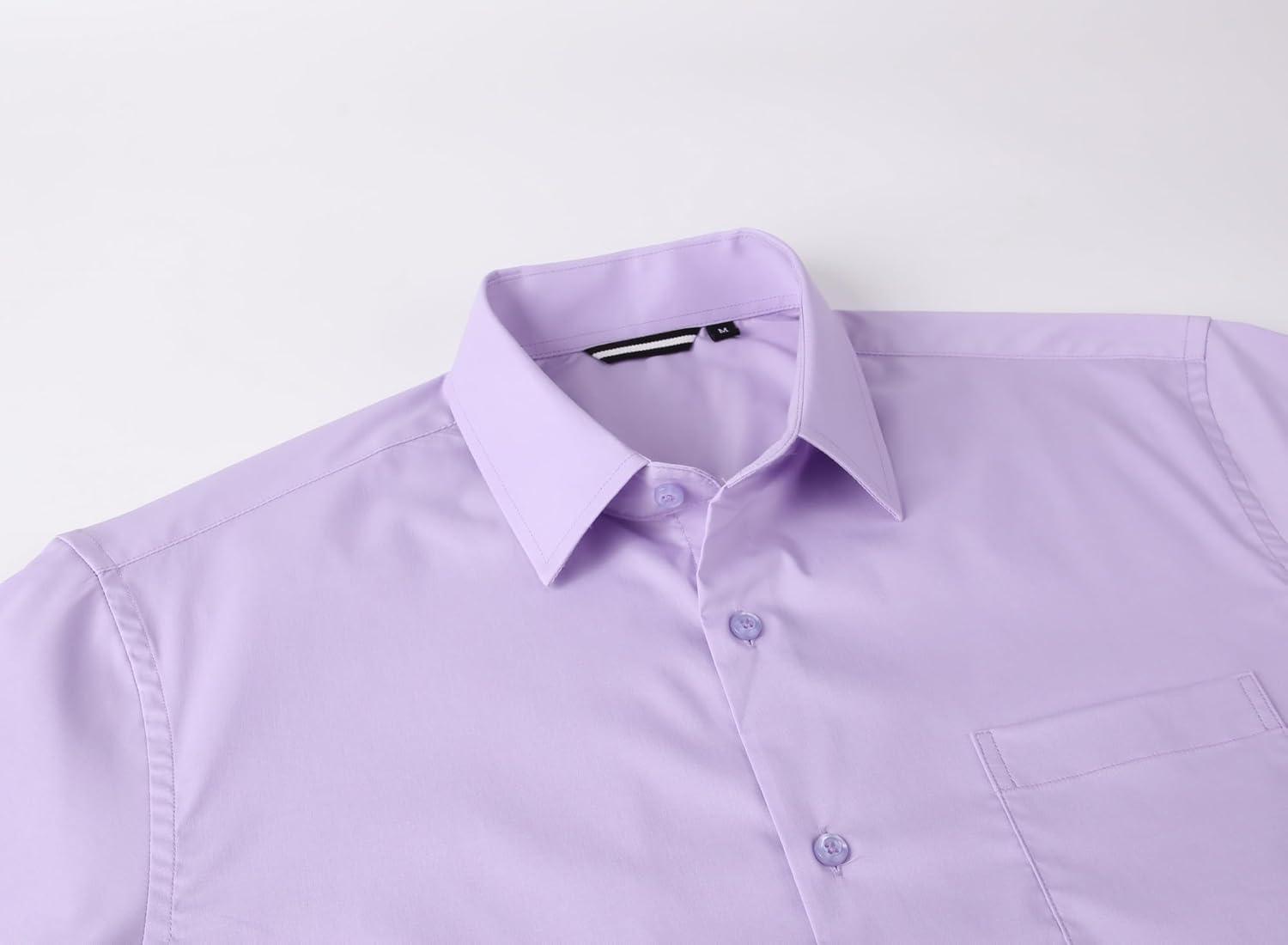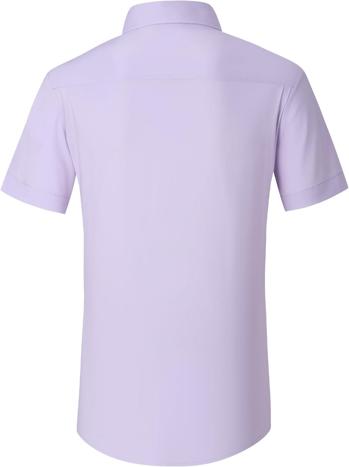 Alex Vando Mens Short Sleeve Dress Shirt Solid Cotton Stretch Button Down Shirt with Pocket(Purple)
