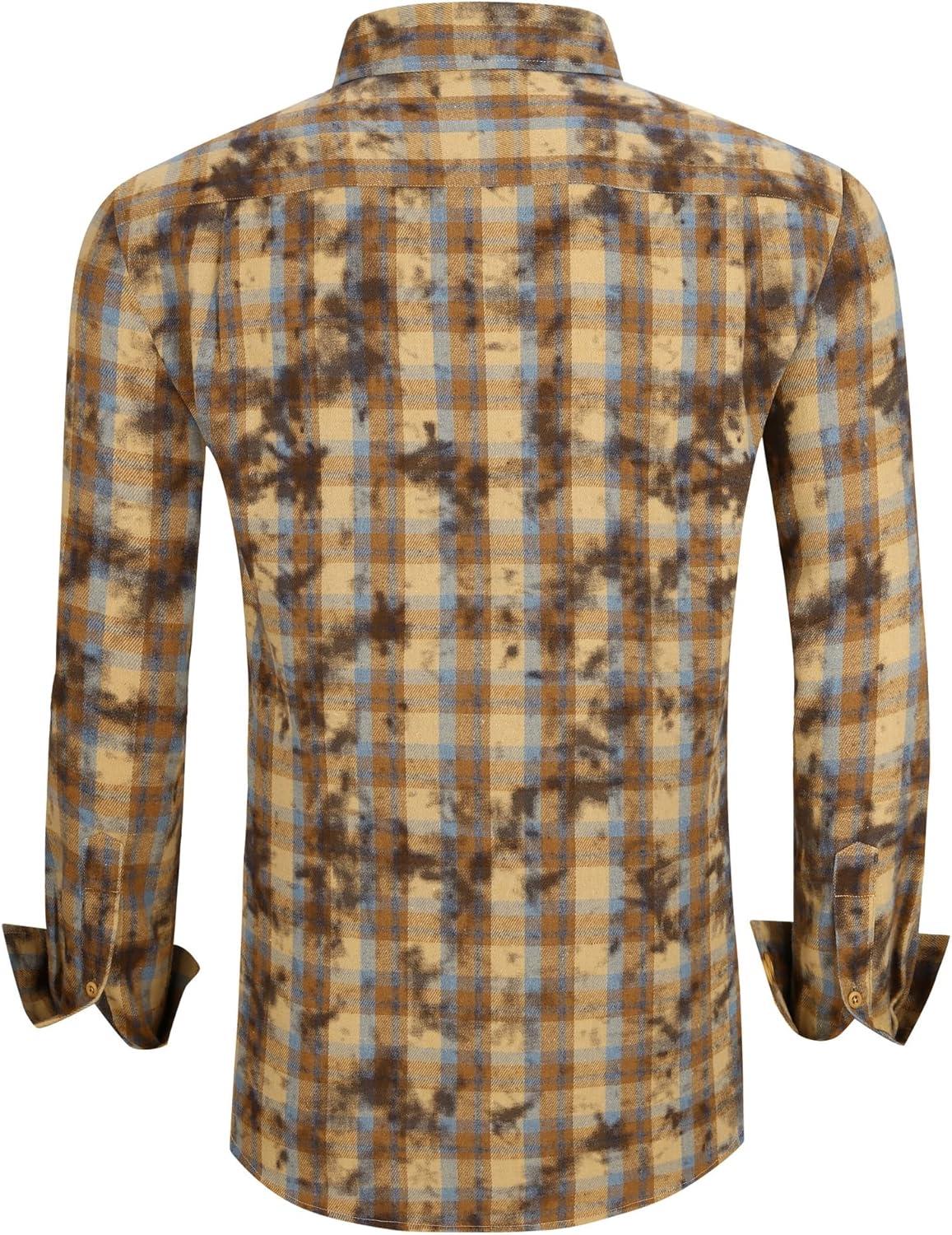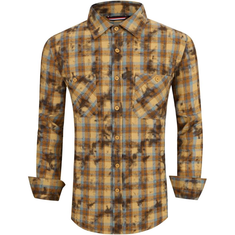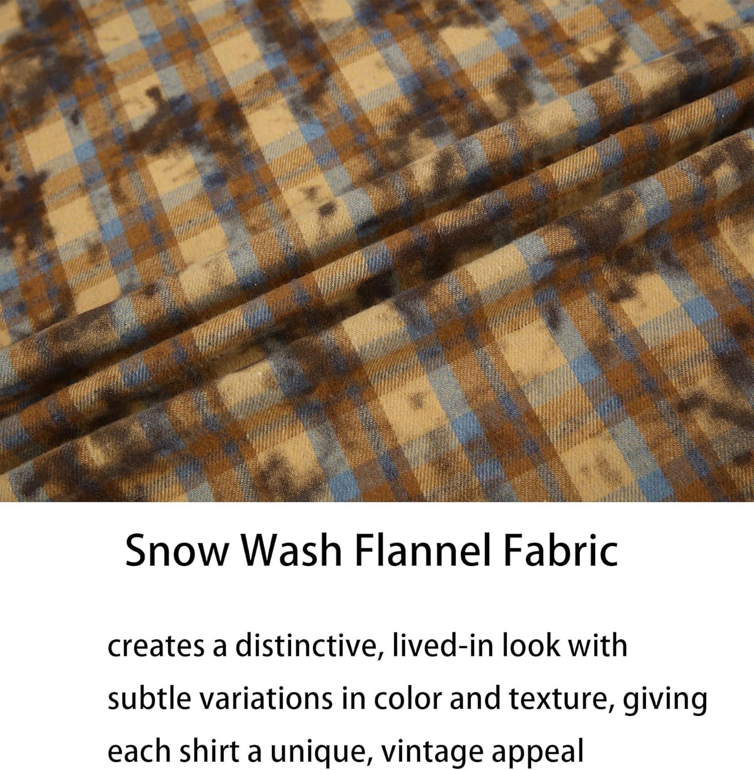 Alex Vando Mens Snow Washed Flannel Shirts Regular Fit Long Sleeve Casual Plaid Button Down Shirt(Snow Yellow)