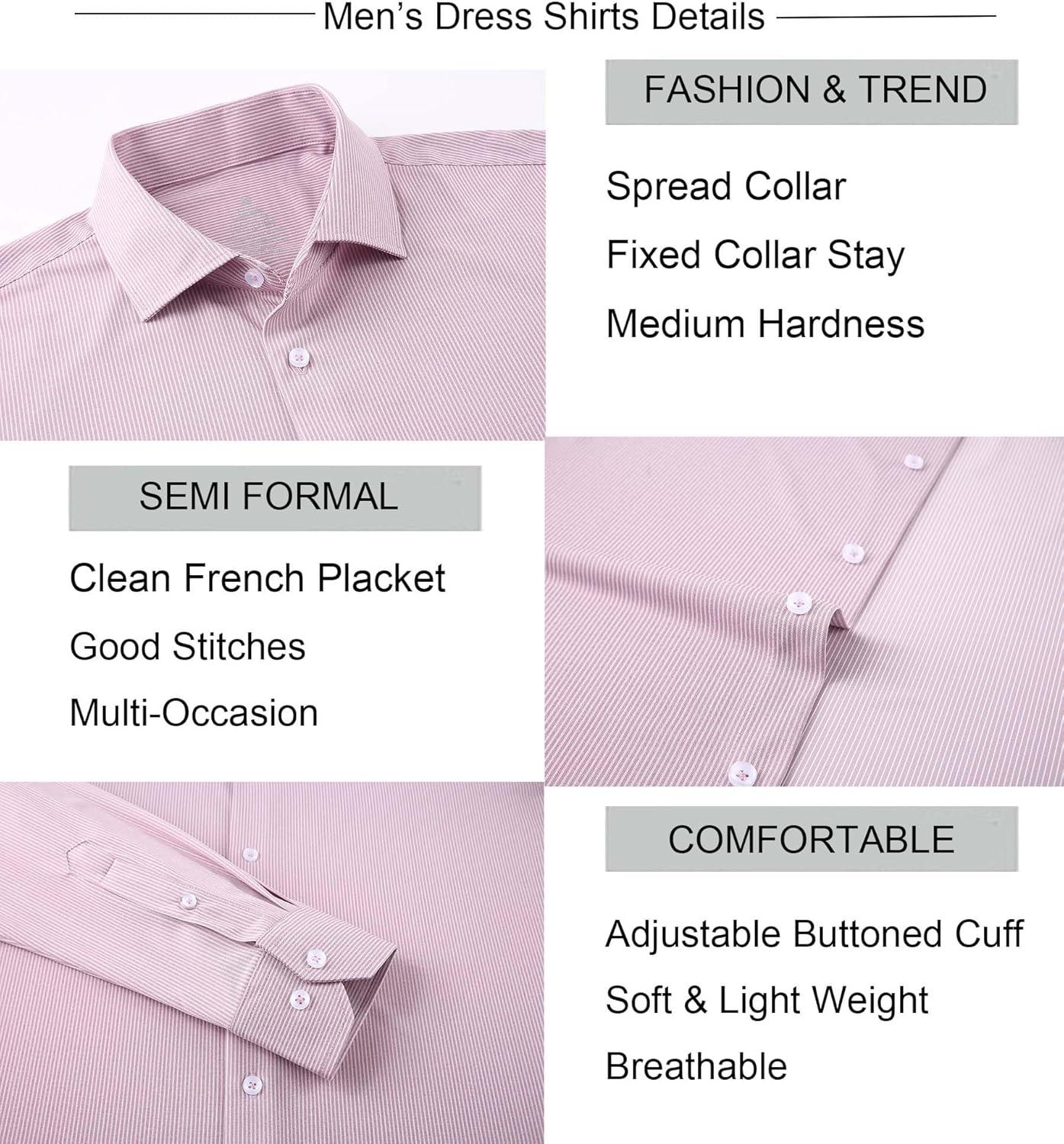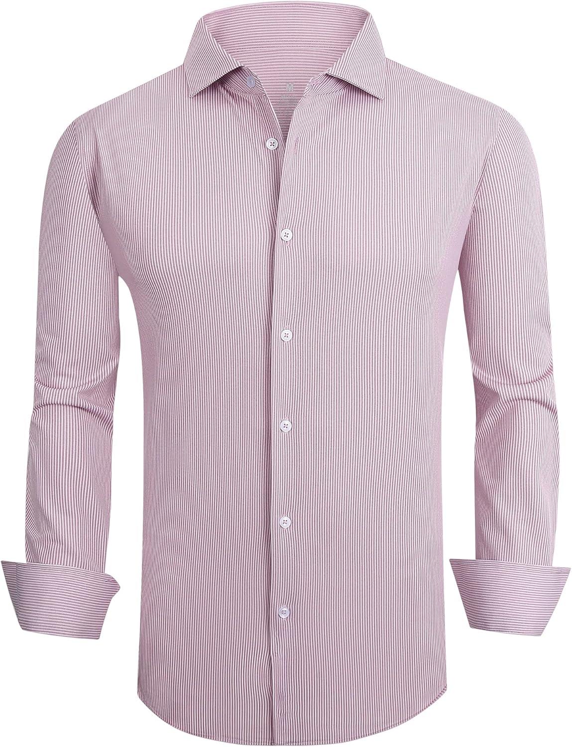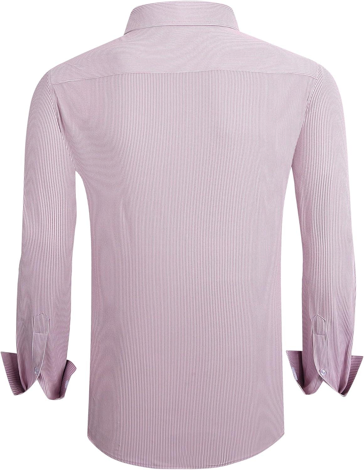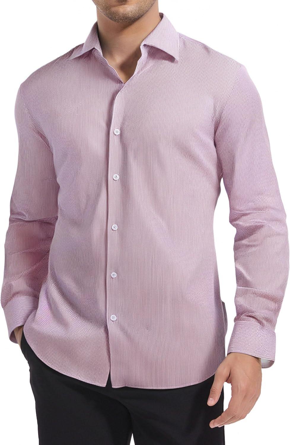 Alex Vando Mens Stripe Dress Shirt Fast-Drying Long Sleeve Regular Fit Button Down Shirts(Lilac)