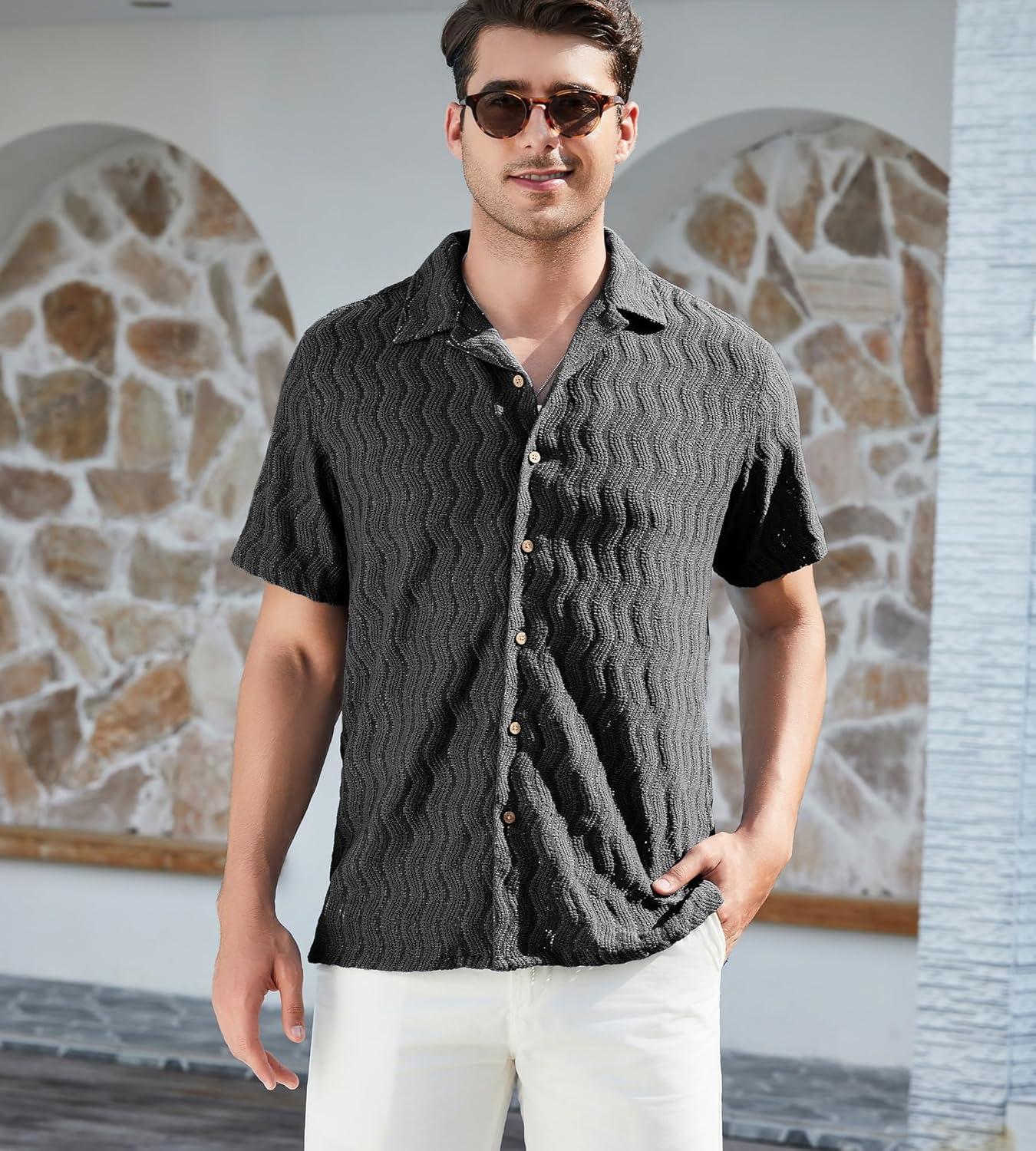 Be the first to review “Alex Vando Mens Summer Shirts See Through Sheer Lace Casual Short Sleeve Button Down Beach Shirt(Wave Black)”