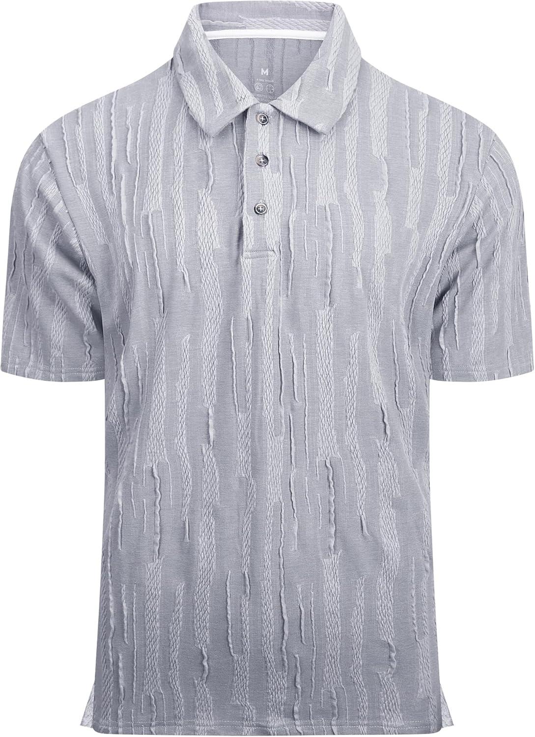Alex Vando Mens Sweater Polo Short Sleeve Soft Knitted Jacquard Pullover Collared Sweater(Grey)