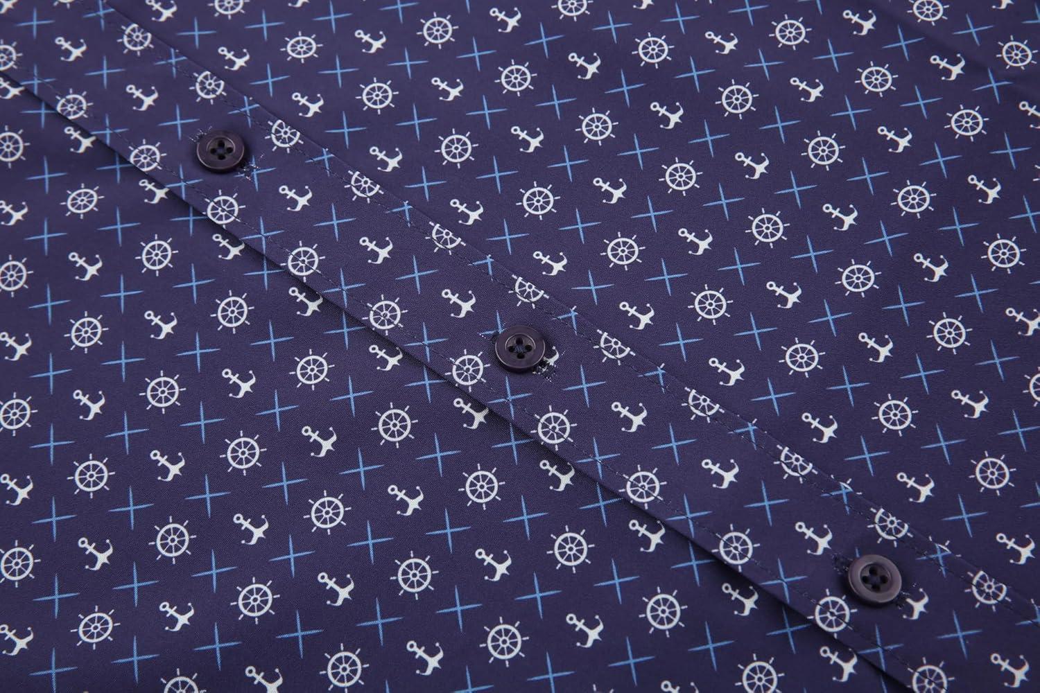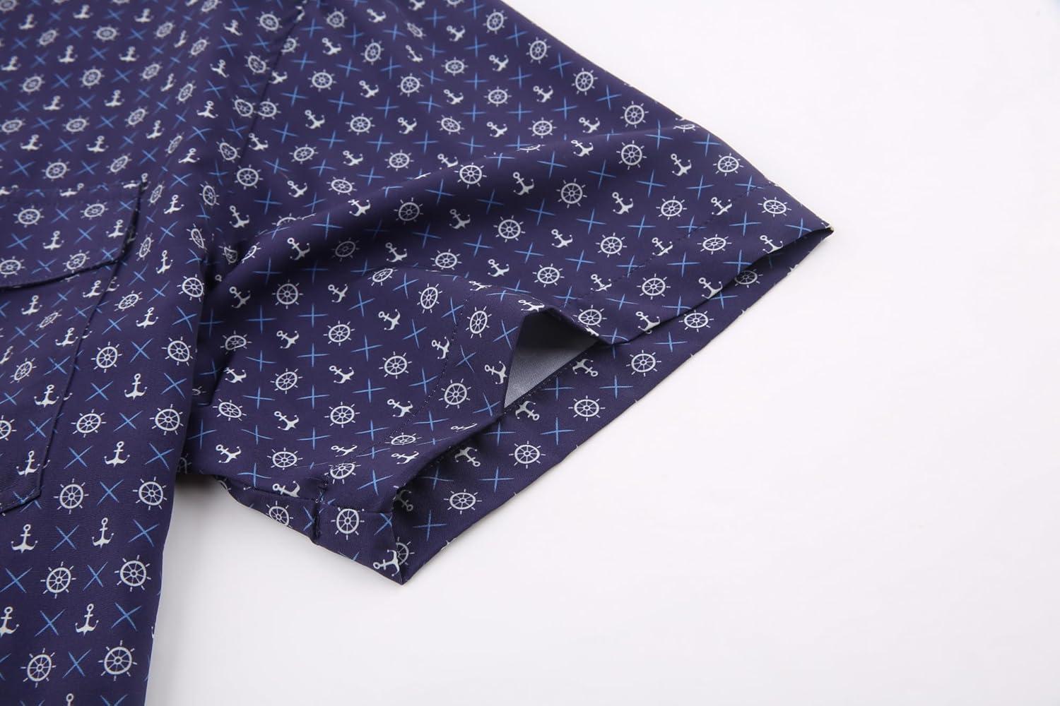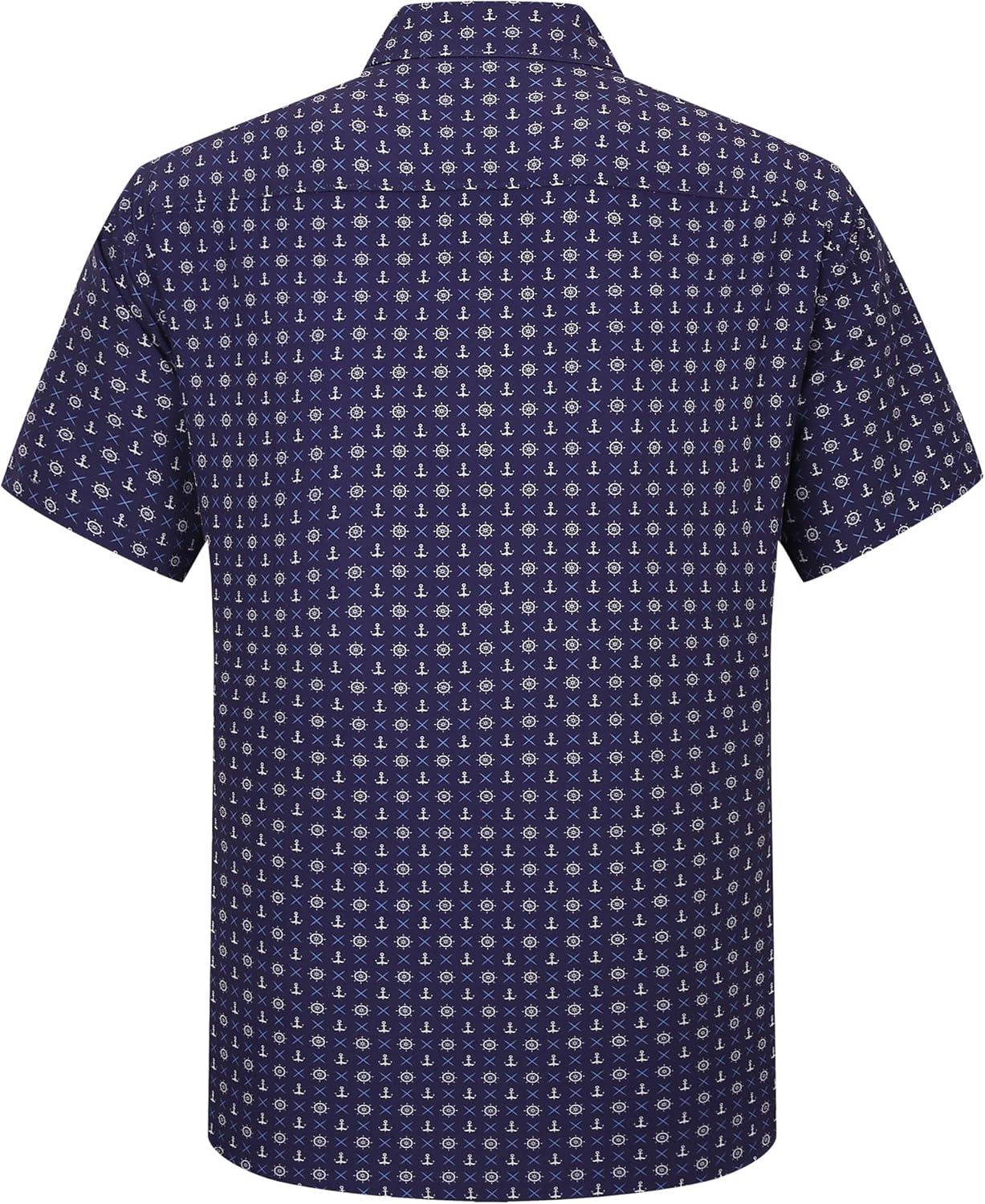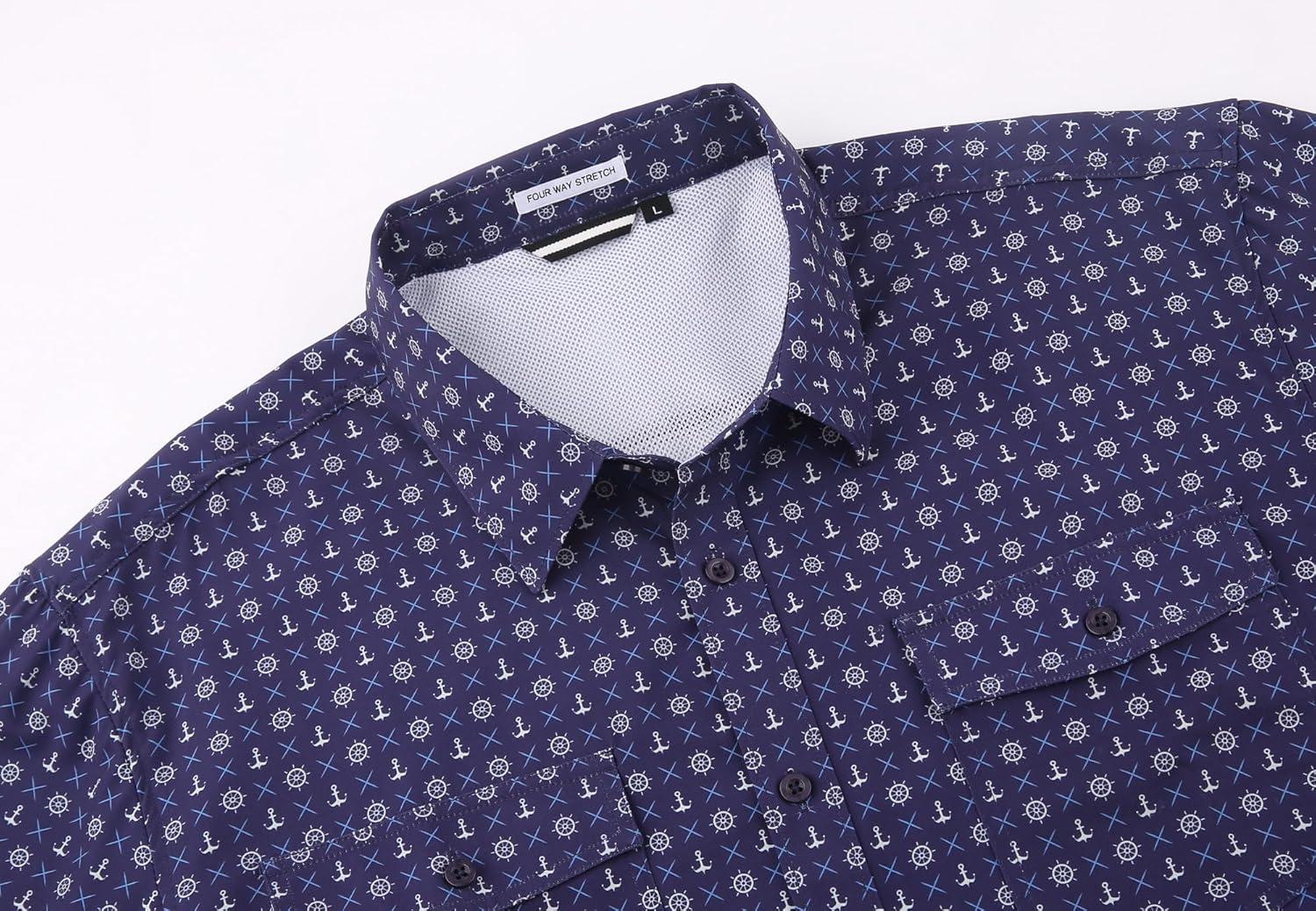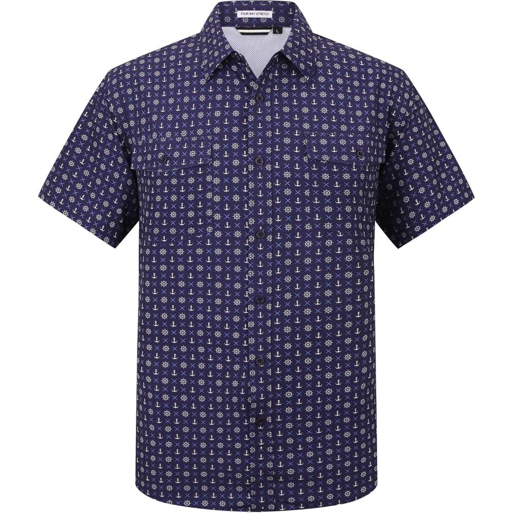 Alex Vando Printed Fishing Shirts Short Sleeve Outdoor Casual Shirt with Mesh Inside(Navy Anchor)