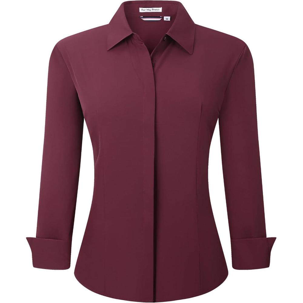 Alex Vando Womens Dress Shirts Wrinkle Free Regular Fit Long Sleeve Stretch Work Shirt(Hidden Placket Burgundy)