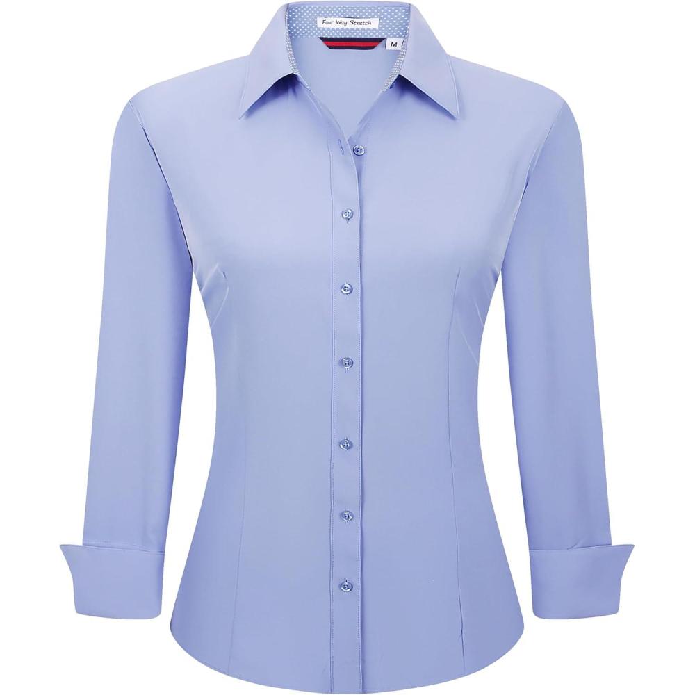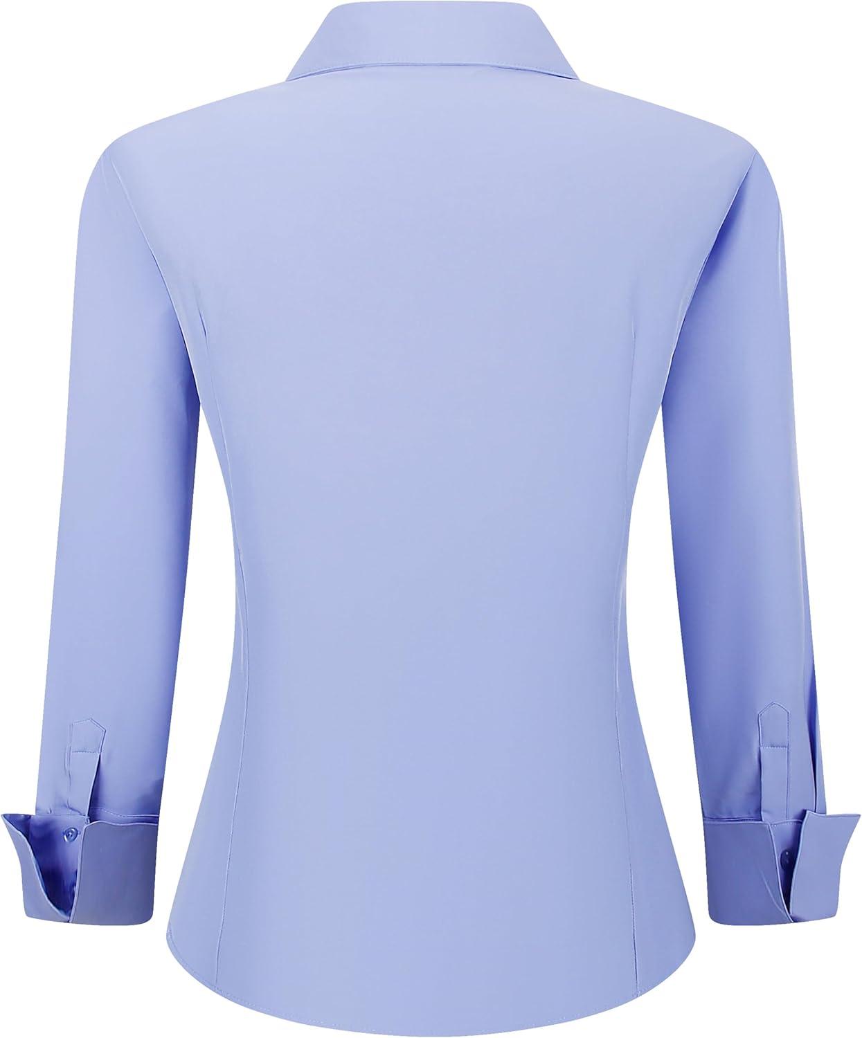 Alex Vando Womens Dress Shirts Wrinkle Free Regular Fit Long Sleeve Stretch Work Shirt(Medium Blue)