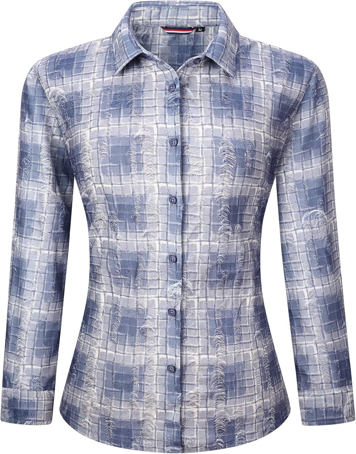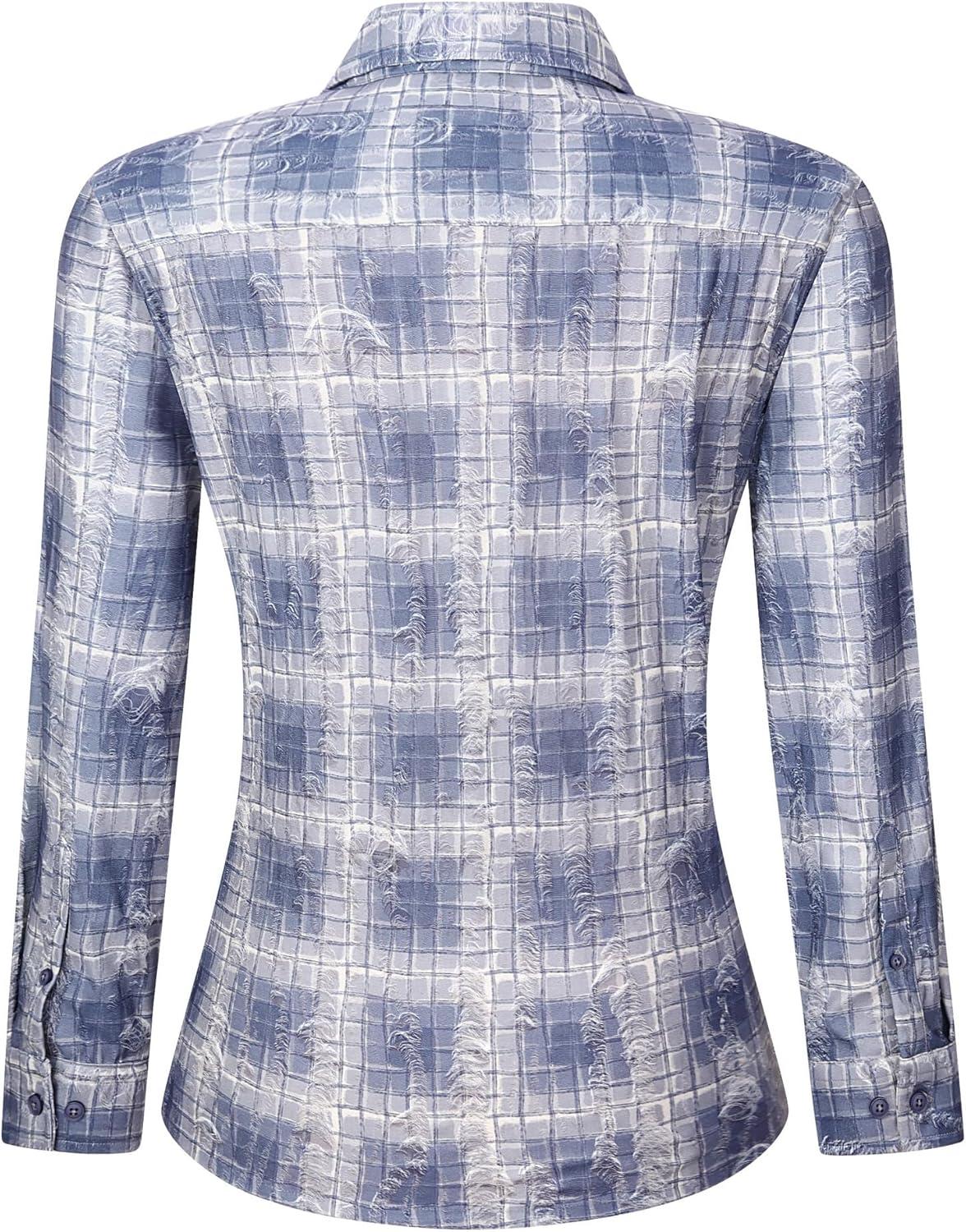 Alex Vando Womens Flannel Shirt Regular Long Sleeve Button Down Flannel Shirts for Women(Distressed Blue)